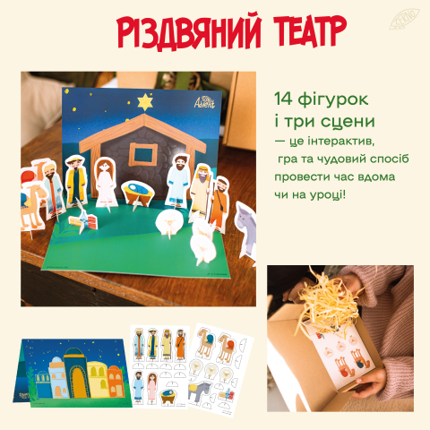 📜 Цей паперовий театр створений для того, щоб діти змогли самостійно або разом із батьками відтворити історію Різдва. Набір включає 14 окремих елементів: фігурки персонажів Різдвяної історії, тварин, і святковий фон, що створює атмосферу сцени. Граючи з театром, діти можуть інсценізувати події народження Ісуса, одночасно вивчаючи біблійну історію через практичну гру.