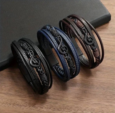 Браслет "Скрипковий ключ" багатошаровий на магніті 21 см Чорний