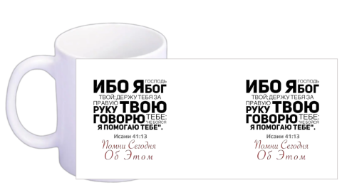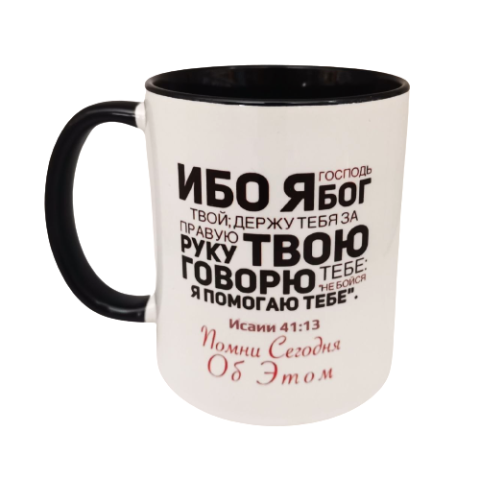 На чашках написані слова з Писання, які можуть підбадьорити людину у скрутну хвилину. Зображення на чашці нанесено методом сублімації, тому малюнок з часом не тьмяніє, а зберігає свій блиск навіть після тривалого використання. Можна використовувати в посудомийній машині.