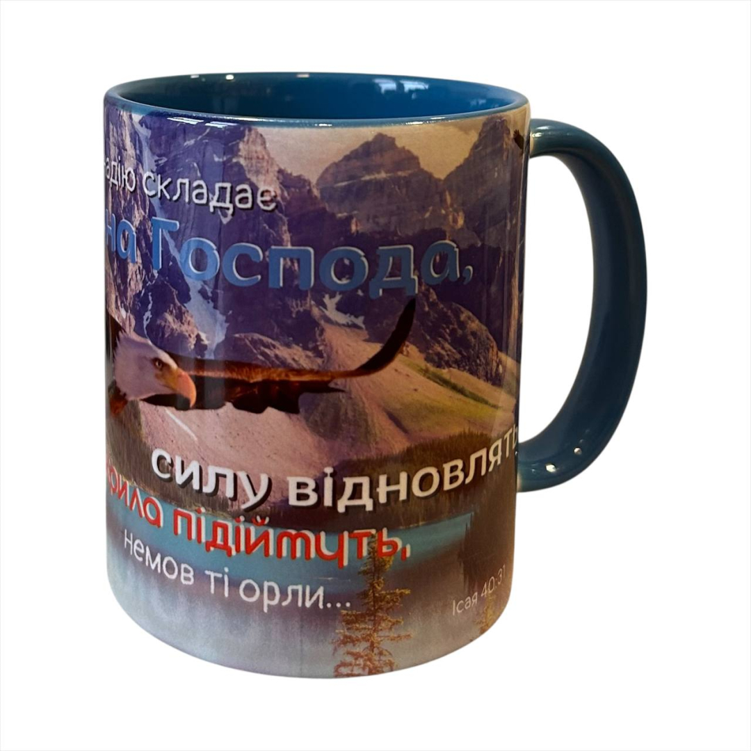 Чашка "...а ті, хто надію складає на Господа" 330 мл. Голуба