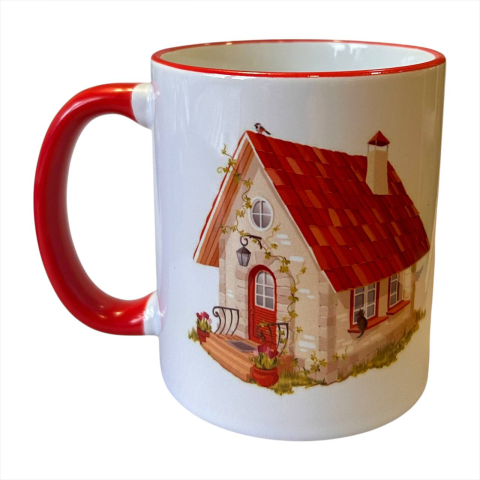 Чашка "А я та дім мій будемо служити Господеві"/ кольоровий обідок та ручка