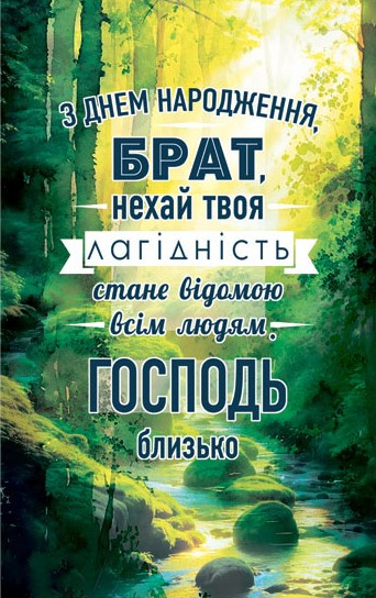 Листівка поштова "З Днем Народження, брат, нехай твоя лагідність стане відомою всім людям. Господь близько"
