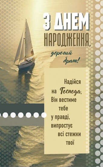 Листівка поштова "З Днем народження, дорогий брат! Надійся на Господа, Він вестиме тебе у правді, випростує..."