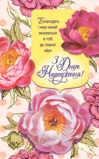 Листівка поштова "З Днем Народження! Благодать і мир нехай множаться в тобі до повної міри"