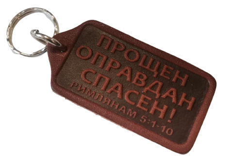 Брелок из натуральной кожи "Прощен Оправдан Спасен!" Рим.5:1-10
