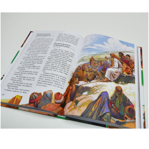 Протягом століть Біблія залишається для людства джерелом віри і мудрості. Кожне покоління відкриває в ній невичерпні духовні багатства. Перед вами найповніший з нині існуючих переказів Священного Писання для дітей російською мовою. Завдяки цим біблійних історій ви познайомитеся з великими біблійними царями і пророками, воїнами і мислителями. Ви дізнаєтеся про долю ізраїльського народу і про події земного життя Ісуса Христа. Старий і Новий Завіт викладені тут доступно і ясно, з урахуванням особливостей дитячого сприйняття. Видання багато ілюстроване малюнками відомого художника Хосе Перес Монтеро.
