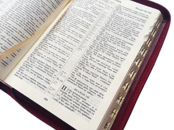 Біблія подарункова російською мовою середнього формату в Синодальному перекладі від Українського Біблійного Товариства. Канонічні книги Старого і Нового завіту.