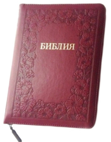 Біблія 055 zti шкір.зам, розмір 20.5 х 14.5 см. бордова, орнамент (артикул 11544.5) російською мовою