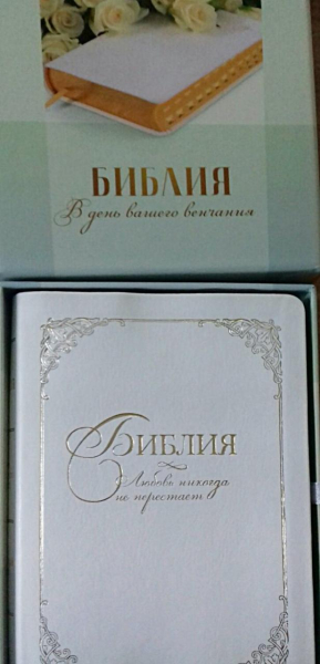 Біблія середня в Синодальному перекладі Весільна, в день Вашого вінчання, в коробці (артикул 11548) російською мовою