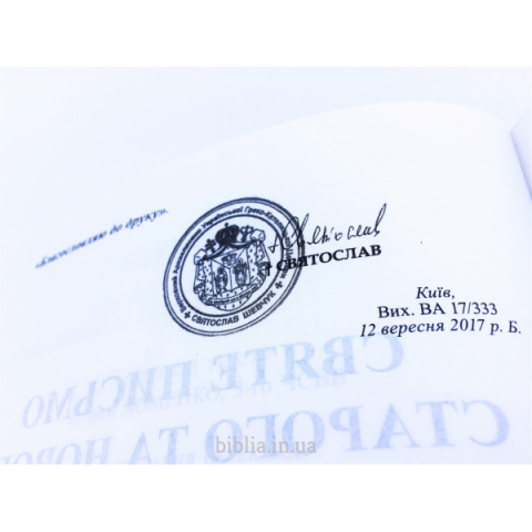 - Надруковано з благословення Верховного Архиєпископа Української Греко-Католицької Церкви Святослава Шевчука, з печаткою.