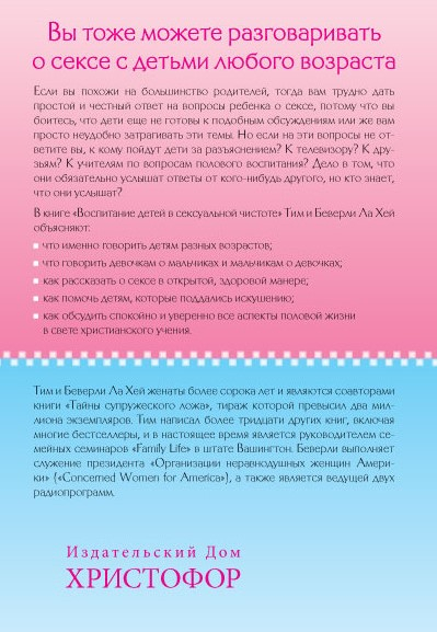 У книзі «Вихування дітей у сексуальній чистоті» Тім та Беверлі Ла Хей пояснюють: