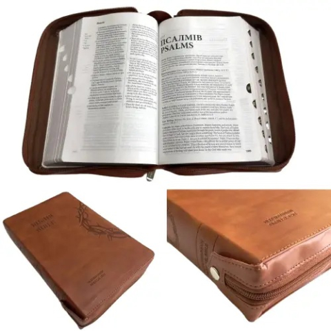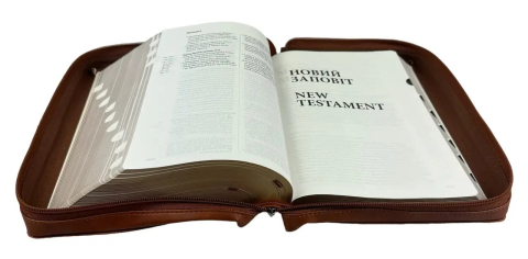 Паралельна Українсько-Англійська Біблія Коричнева на застібці, розмір 16 х 24 см / Ukrainian English Parallel Bible