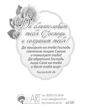 Оборот: Нехай благословить тебе Господь і збереже тебе! Нехай пригляне на тебе Господь світлим обличчям Своїм і помилує тебе! Нехай Господь наверне обличчя Своє на тебе і дасть тобі мир. Числа 6:24-26