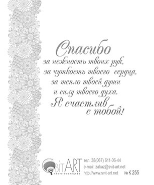 Оборот: Дякую за ніжність твоїх рук, за чуйність твого серця, за тепло душі твоєї, за силу твого духу. Я щасливий із тобою!