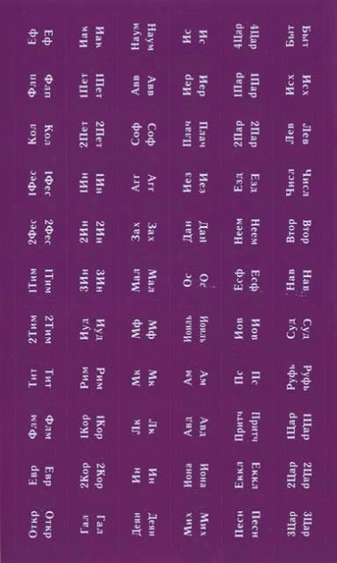 Назви 66 книг Біблії надруковано на плівці "оракал" і прорізано плотером