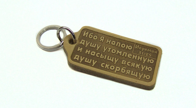 Брелок зі шкіри: Бо напоюю Я душу стомлену і насыщу всяку душу скорботну. Єремія 31:25