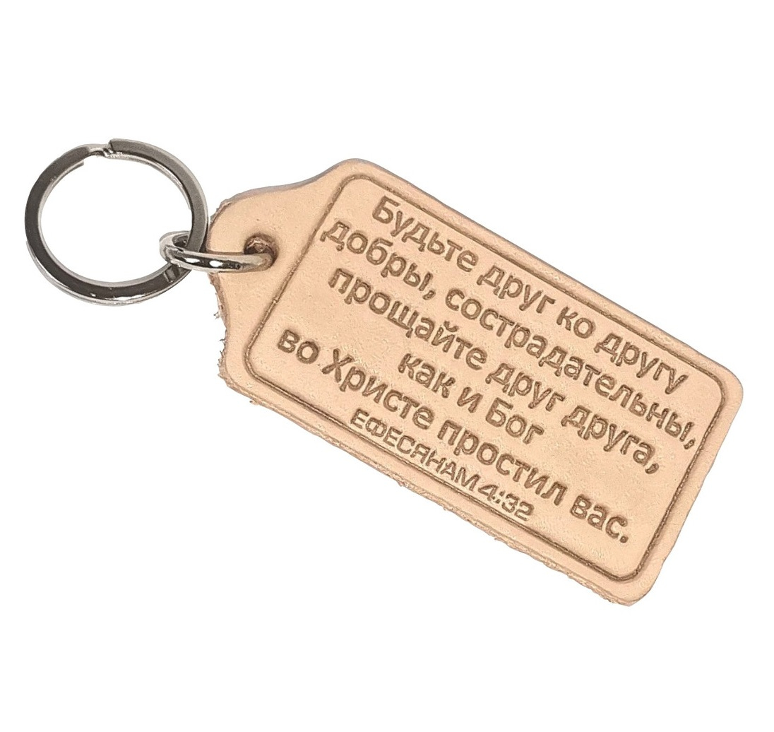 Брелок з натуральної шкіри "Будьте один до одного будьте ласкаві" Еф.4:32 / російською мовою
