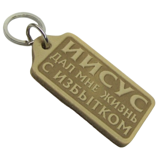Брелок з натуральної шкіри "Ісус дав мені життя з надлишком" / російською мовою