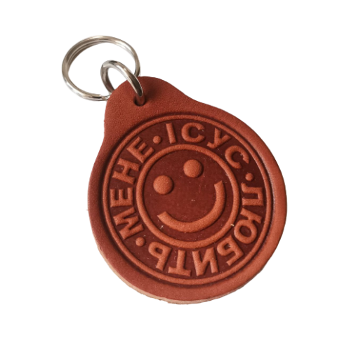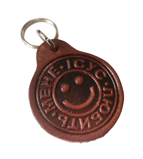 Брелоки виготовлені з натуральної шкіри, текст - гаряче тиснення російською та українською мовами.