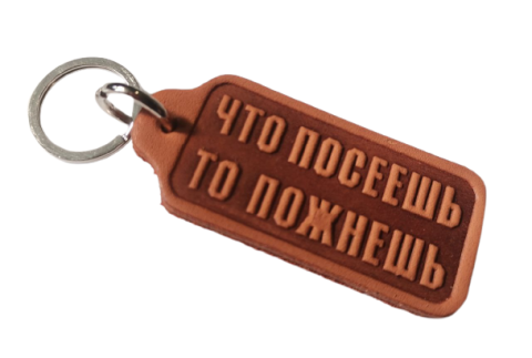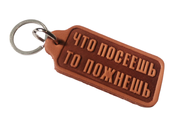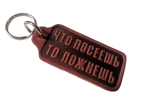 Брелок з натуральної шкіри "Що посієш те й пожнеш" / російською мовою