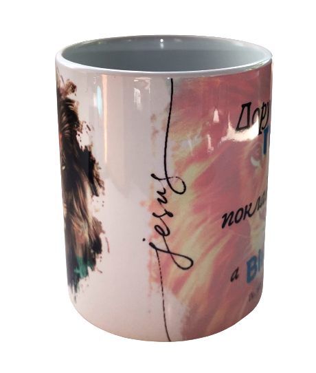 На чашках написані слова з Писання, які можуть підбадьорити людину у скрутну хвилину. Зображення на чашці нанесено методом сублімації, тому малюнок з часом не тьмяніє, а зберігає свій блиск навіть після тривалого використання. Можна використовувати в посудомийній машині.