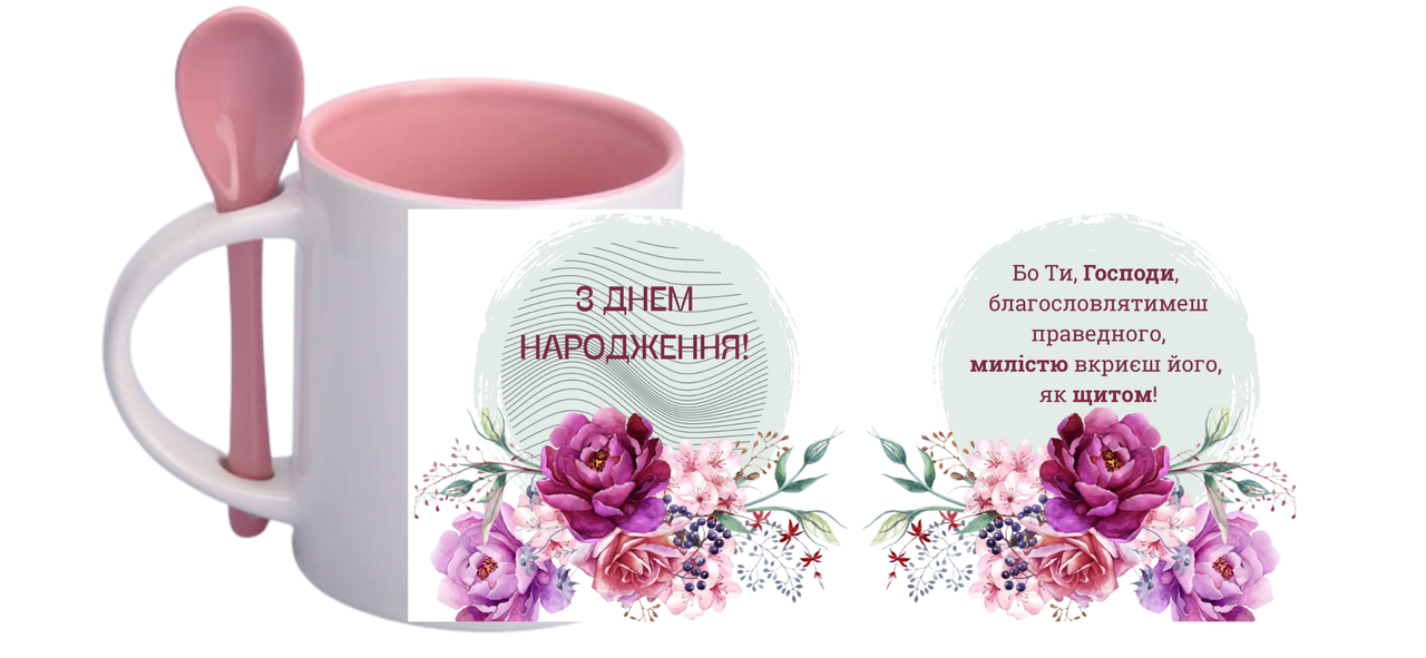 На чашках написані слова з Писання, які можуть підбадьорити людину у скрутну хвилину. Зображення на чашці нанесено методом сублімації, тому малюнок з часом не тьмяніє, а зберігає свій блиск навіть після тривалого використання. Можна використовувати в посудомийній машині.