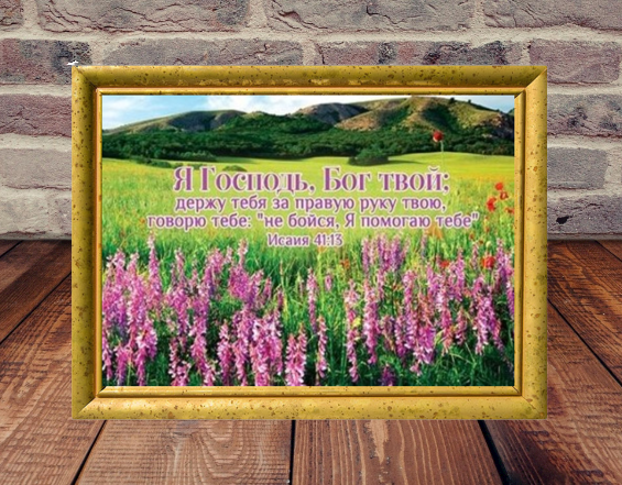 Повнокольоровий, барвистий друк, формат А4. Унікальний дизайн з інтер'єром (або краєвидом) та популярним текстом з Біблії неодмінно прикрасить Ваш будинок та будинок Ваших близьких!