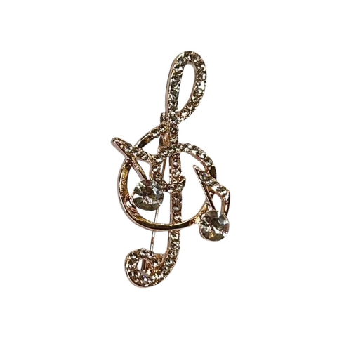 Вишукана брошка у формі скрипкового ключа виготовлена зі міцного цинкового сплаву та прикрашена блискучими камінцями цирконію. Вона поєднує в собі музичну символіку та елегантний сучасний дизайн. Мерехтіння цирконію підкреслює витонченість аксесуара, роблячи його помітним акцентом у будь-якому образі — від повсякденного до урочистого. Така прикраса стане чудовим подарунком для поціновувачів музики та стильних деталей.