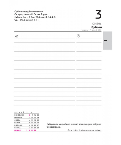 Календар-щоденник на 2026 рік стане найкращим помічником у плануванні справ. Якщо ваш день розписано по хвилинах, то органайзер такого типу - це саме те, що вам потрібно.