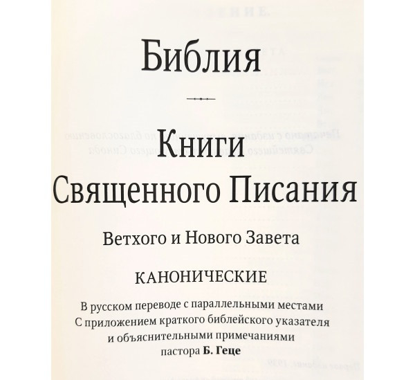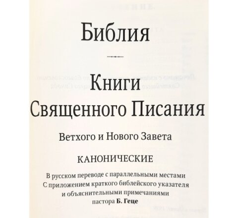 Библия Геце Синодальный перевод на русском языке с параллельными местами. Книги Священного Писания Ветхого и Нового Завета. Без буквы "Ъ" (современная орфография).