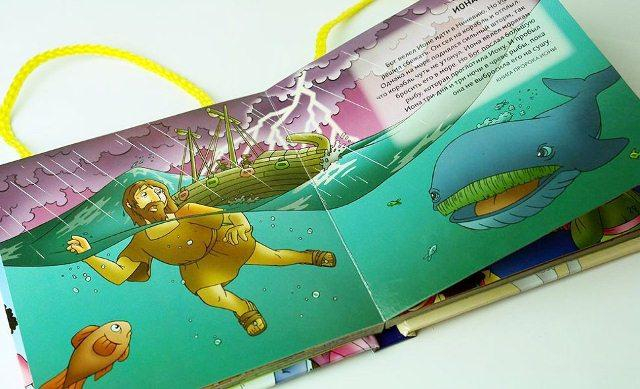 Для деток отличный вариант библии,каждая страничка заламинирована,у меня сын 4 года каждый вечер просит читать ,а младшему 1 год любит картинки в ней