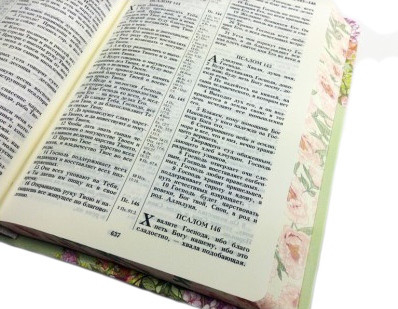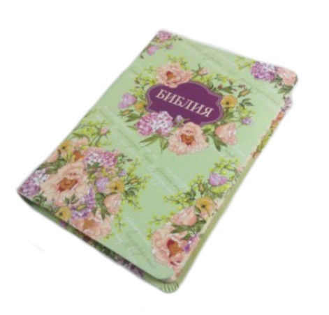 Библия на русском 055 ti размер 14.5х19.5 см светло-зеленая, цветы (арт 11551.2)