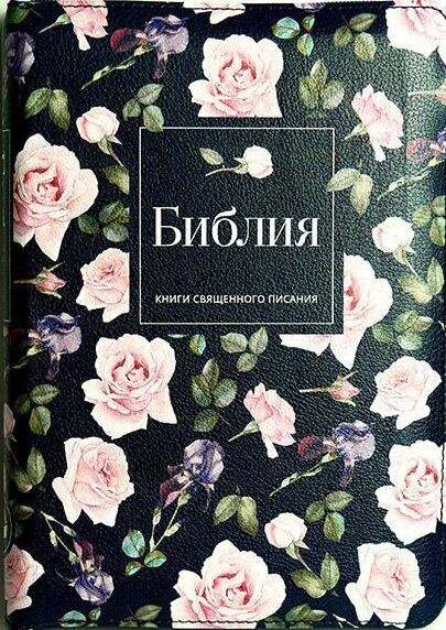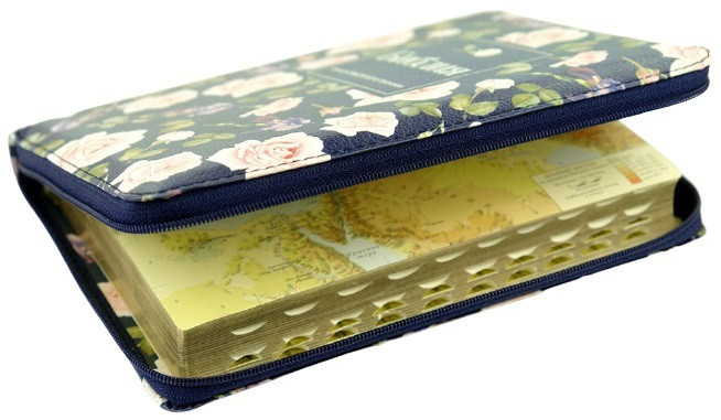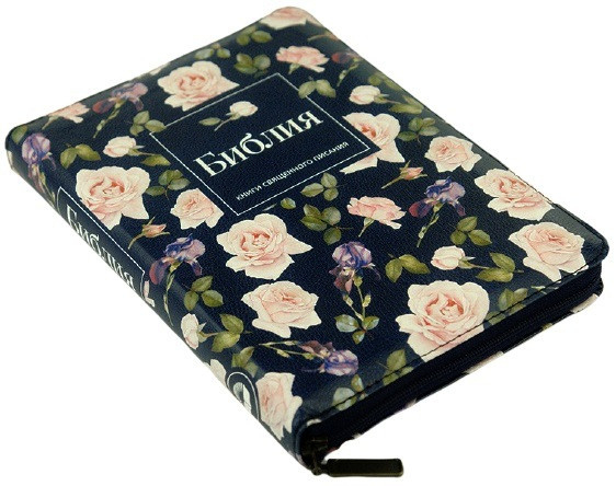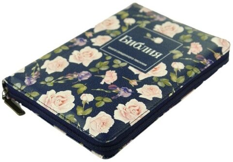 Библия средняя 055 zti кож.зам, размер 14.5 х 20.5 см Темно-синяя с Розами (арт. 11552.3)