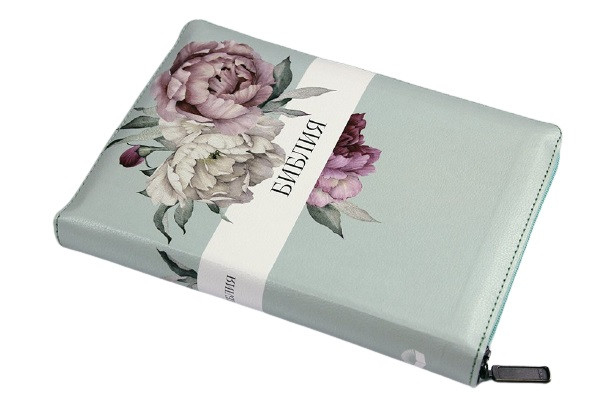 Библия средняя 055 zti кож.зам. в Синодальном переводе на змейке Пионы (арт. 11552.2)