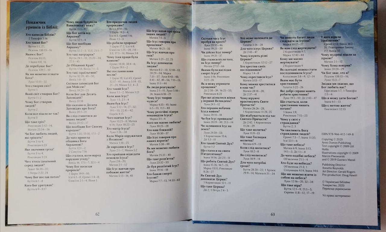 Відповіді на різні питання християнської віри ти знайдеш у цій книжці з чудовими ілюстраціями Марціна Півоварського та Густаво Мазалі, польського та аргентинського художників.