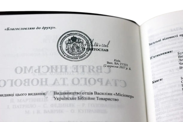 - Надруковано з благословення Верховного Архиєпископа Української Греко-Католицької Церкви Святослава Шевчука, з печаткою.