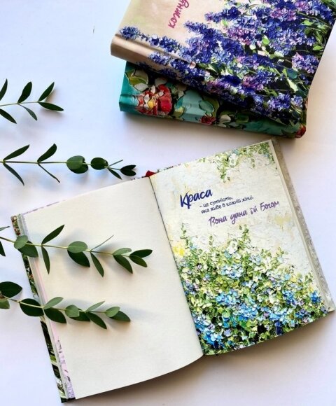 Тебе попала в руки не просто хорошая вещь. Внутри ты найдешь много мудрых мыслей и достаточно места для того, чтобы записывать свои мысли, а также все, чем наполнена твоя жизнь. Обрати внимание на роскошные иллюстрации – это фрагменты картин, автором которых является художница Елена Онуфрив.