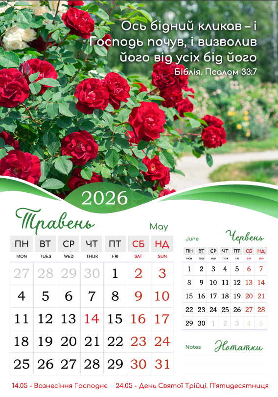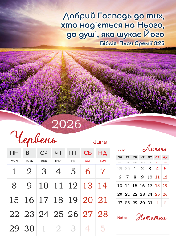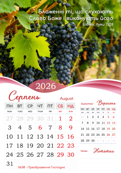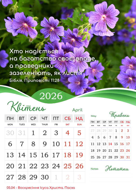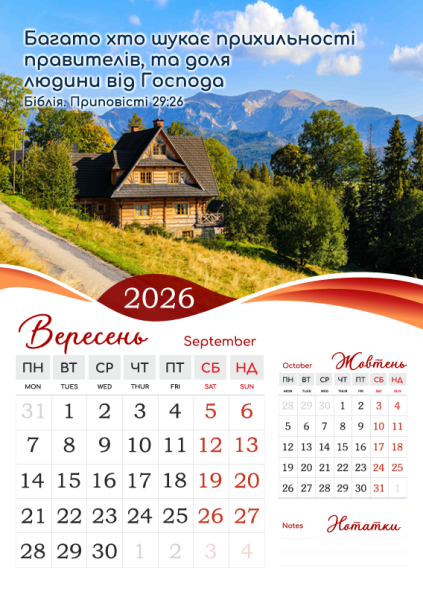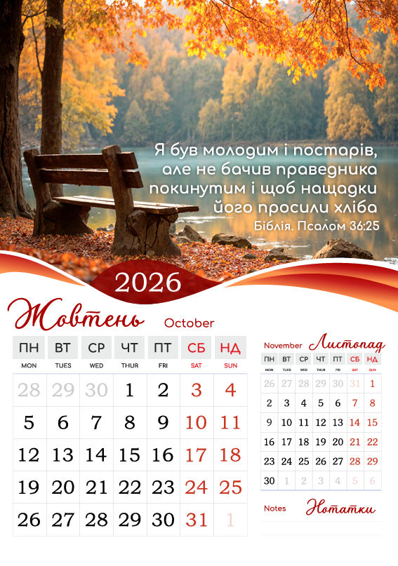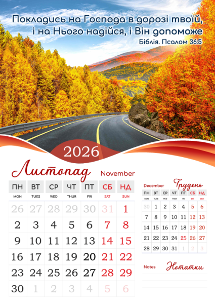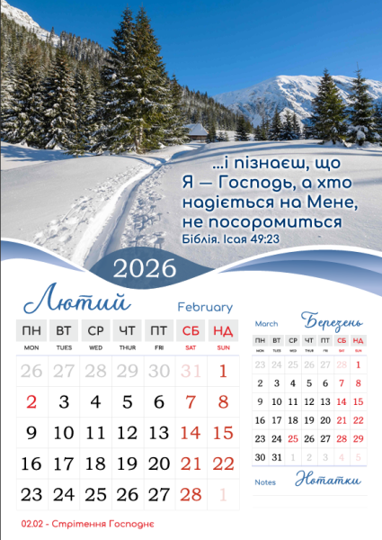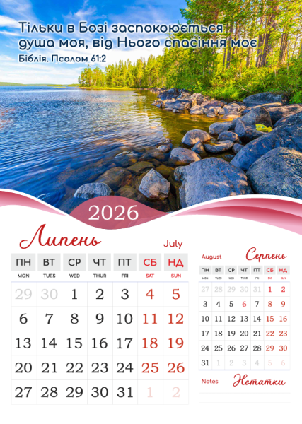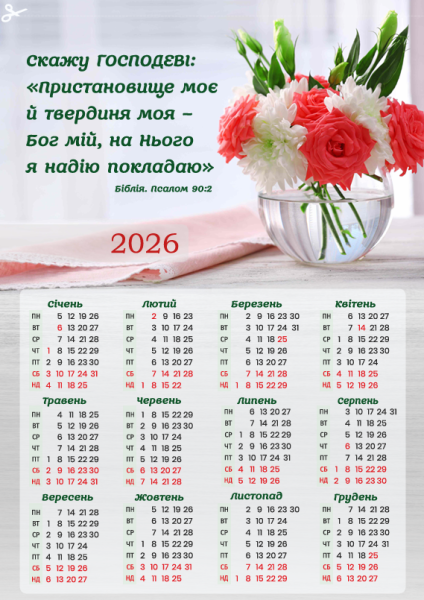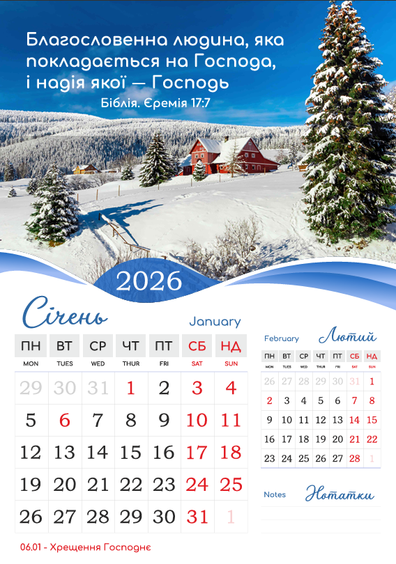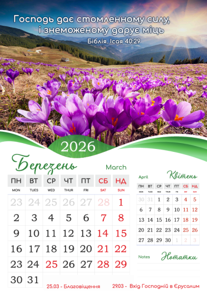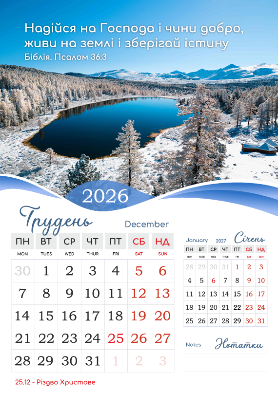 Християнський великий перекидний настінний календар на 2025 рік українською мовою "Мир Божий понад усе"