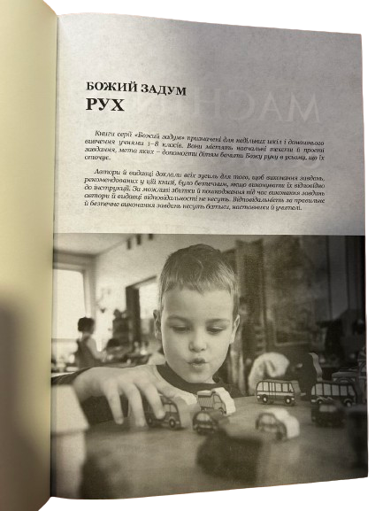 Особливість серії підручників "Божий задум" у тому, що кожна книга адресована школярам різного віку. По суті, це - відновлення традицій змішаної системи навчання, коли старші учні можуть допомагати молод-шим, закріплюючи при цьому вивчений матеріал.