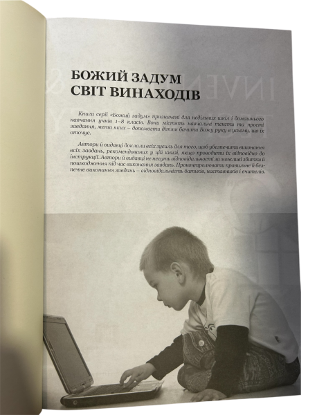 Цей посібник розповість про багато важливих винаходів , про закони фізики , завдяки яким діють аероплани та ракетні двигуни. Ти познайомишся з принципами роботи телеграфу, телефону й супутникового зв,язку. Більше дізнаєшся про комп,ютер, побачиш, як творчі здібності людини відкривають Бога, який створив нас за Своїм образом і подобою.