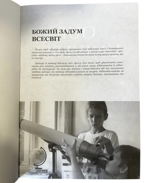 Цей посібник розповість про планети, Сонце, Місяць, зорі та інші небесні тіла - унікальні й чудесні Божі творіння. Ти дізнаєшся про людей, які побували в космосі та ступали на Місяць, навчишся ще більше цінувати Землю - дивовижну планету, що створена Богом спеціально для нас.