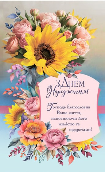 Листівка поштова "З Днем Народження! Господь благословляє Ваше життя, наповнюючи його милістю та щедротами"