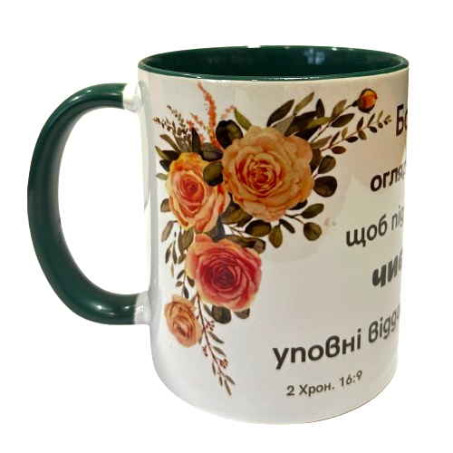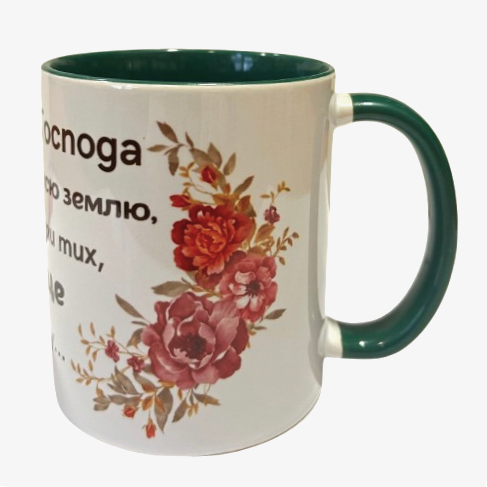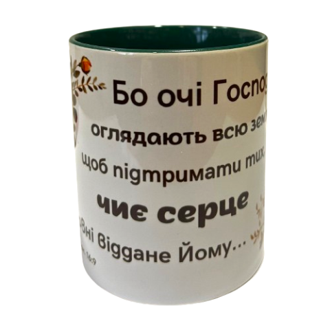 Чашка "Очі Господа оглядають" / кольорова ручка та всередині т.Зелена