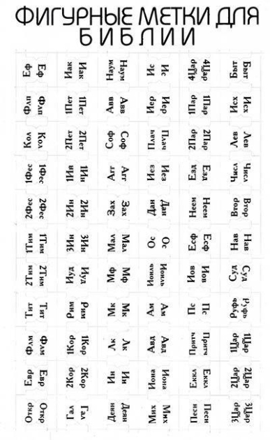 Названия 66 книг Библии напечатаны на пленке "оракал" и прорезаны плоттером