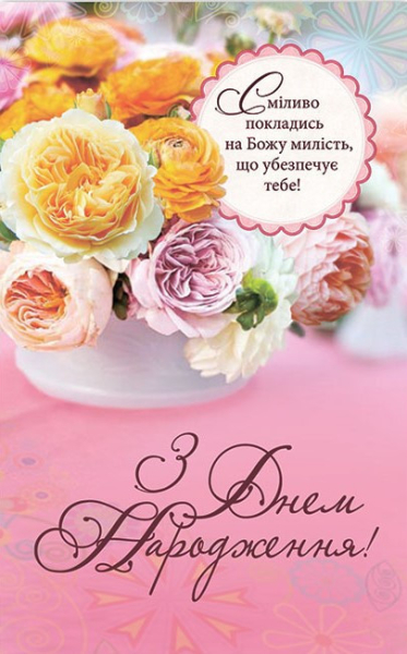 Открытка почтовая "З Днем Народження! Сміливо покладись на Божу милість..."