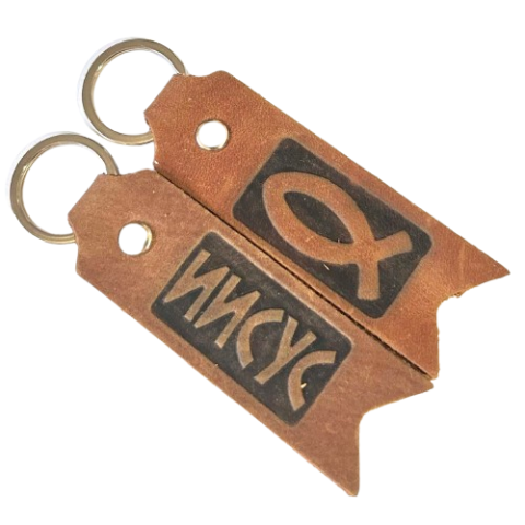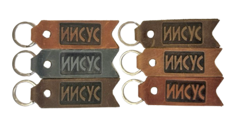 Брелок из натуральной кожи "Иисус / Рыбка" флажок, двусторонний