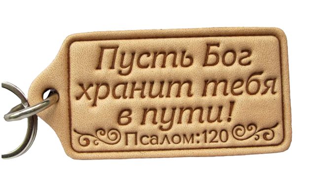Брелок из натуральной кожи "Пусть Бог хранит тебя в пути!"