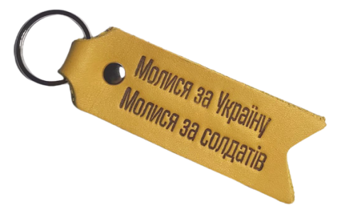 Брелок з натуральної шкіри "Молися за Україну Молися за солдатів" флажок, двосторонній