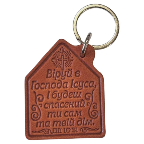 Брелок з натуральної шкіри "Віруй в Господа Ісуса"