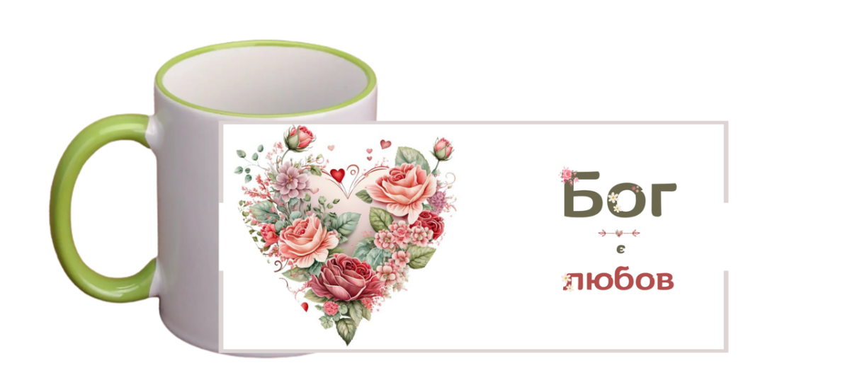 Чашка "Бог есть любовь" на украинском языке Салатовий